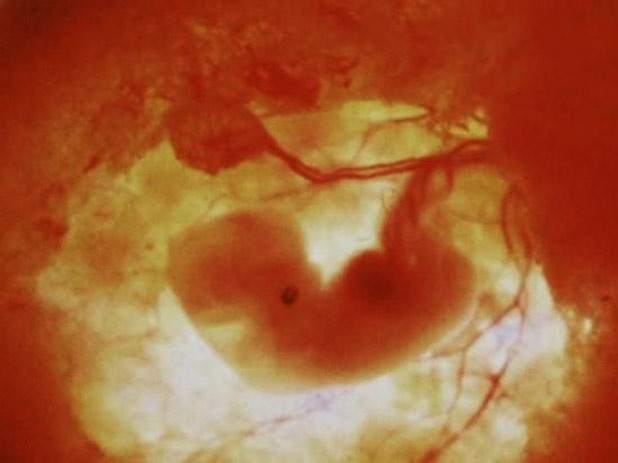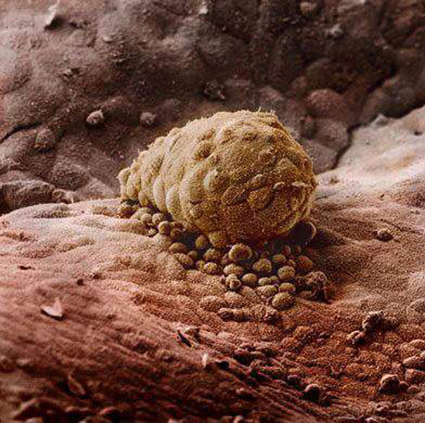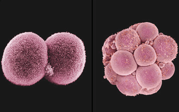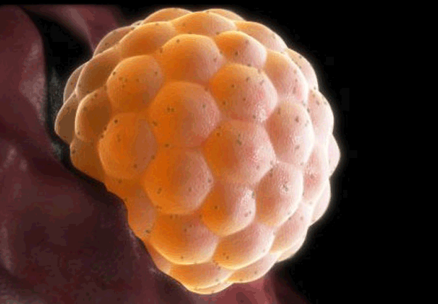 Oplođenu jajnu ćeliju prihvata jajovod svojim rojtama (fimbrijama) i djelovanjem njegovih peristaltičkih pokreta i vodene struje koja nastaje kretanjem treplji epitela u jajovodima počinje da se dijeli. Sinhronizovanom serijom mitotičnih dioba broj blastomera se povećava. Formacija koja sadrži više desetina blastomera oblikom podsjeća na malinu ili dud i zove se morula. Sa umnožavanjem blastomera one postaju manje, u centralnom dijelu morule kompaktnije, a na periferiji nešto rastresitije. Morula sa 12 do 16 blastomera stigne u šupljinu materice između trećeg i četvrtog dana od oplođenja. U moruli koja ima 16 i 22 blastomera jasno se razlikuje grupa unutrašnjih (centralnih) i perifernih ćelija. Centralna, tzv. unutrašnja ćelijska masa je osnova budućeg embriona, dok će iz spoljnih ćelija nastati trofoblast